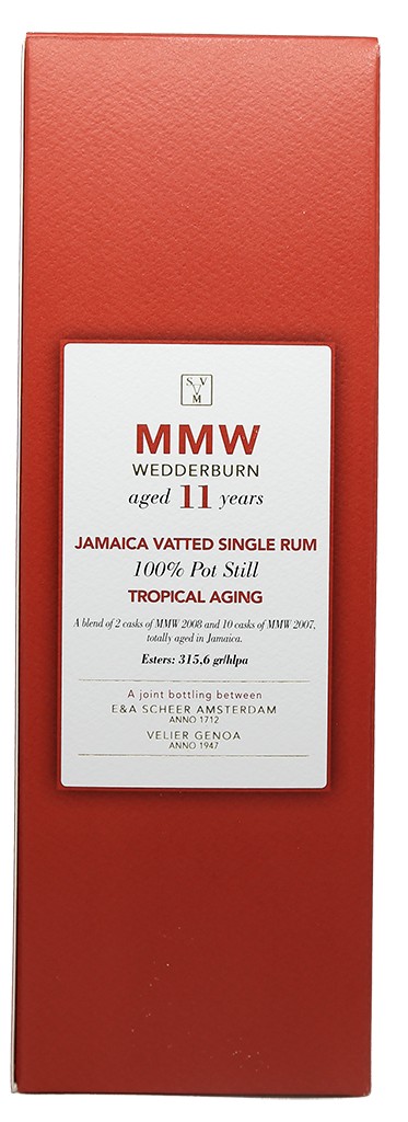 Popis: Tato mimořádná edice je výsledkem spolupráce dvou nezávislých společností, nizozemské Scheer a italské Velier. Pro její výrobu byly vybrány rumy renomované destilerie Monymusk dvou stylů – Wedderburn a Plummer. Část sudů byla uložena ke zrání v tropickém podnebí Jamajky a část byla ke zrání převezena do chladnějšího prostředí kontinentální Evropy. Edice tak nabízí jedinečnou možnost ochutnat rumy ze stejné destilerie, stejného stylu i stáří a porovnat, jak odlišný vliv na ně mělo kontinentální a tropické zrání.. Účinky těchto odlišných podnebí zde ilustruje mírně například nižší obsah alkoholu.